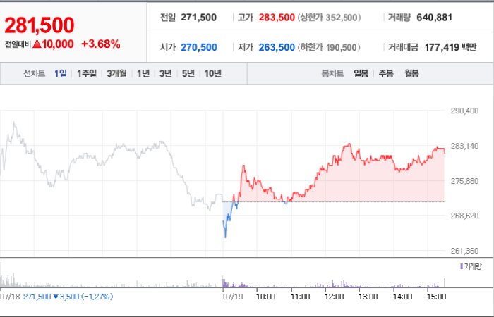 한화에어로스페이스의 현재 주가는 281,500원이며 전일 대비 원의 모습을 보이고 있습니다. 주주구조를 살펴보면 한화(외 2인)이 지분 33.98%를 소유하고 있습니다. 회사는 상업서비스 기업으로 장중 기준으로 주가는 281,500원이며 시가 총액은 14조2523억 원, 발행 주식수는 50,630,000주입니다. 외국인 보유 비중은 37.46%이며 장중 거래량은 645,057주를 기록했습니다. 매출액은 18,483억 원을 달성했습니다.