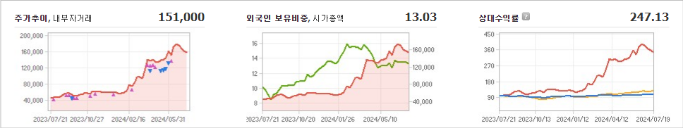 한미반도체의 현재 주가는 151,000원이며 전일 대비 -2,500원 하락했습니다. 주요 주주인 곽동신(외 7인)은 회사의 지분 54.61%를 보유하고 있습니다. 시가 총액은 14조6460억 원이며 발행 주식수는 96,993,634주입니다. 외국인 보유 비중은 13.03%이며 거래량은 644,491주입니다. 또한, 회사의 매출액은 773억 원을 기록했습니다.